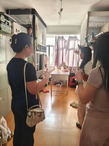 本次检查聚焦用电安全、消防安全、假期留校情况以及寝室卫生四个方面。重点排查了违规电器、私拉电线等问题,检查内务卫生,并沟通学生假期去向与留校安排等情况。各辅导员以“细之又细、严之又严”的标准逐间走访寝室,针对出现的问题当场提出意见,立即整改。检查过程中,辅导员与学生亲切交流假期计划,叮嘱离校学生其妥善保管贵重物品、关闭电源门窗,途中注意交通安全与个人防护;强调留校学生要遵守学校规定、禁用违规电器,提醒防火防盗、保持寝室整洁,遇困难及时联系辅导员。