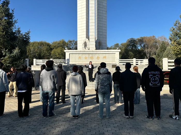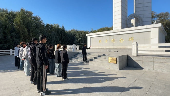 活动伊始,孟凡格同学作为讲解员,为在场师生深情讲述了英烈纪念碑的建造历程、设计寓意及其背后承载的厚重历史。从抗日战争时期抗联将士在白山黑水间的铁血坚守,到解放战争中大庆子弟兵的奋勇冲锋,再到抗美援朝战场上英雄儿女的保家卫国,一段段可歌可泣的英雄事迹,让大家的思绪仿佛回到了那段波澜壮阔的岁月,深刻体会到今日和平与繁荣的来之不易。